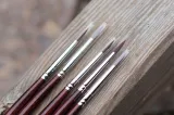 Pędzel wykonany z włókien syntetycznych, w kolorze ciemno bordowym, o maksymalnej grubości włókien do 0,14mm. Odporny na zużycie.