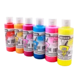 Neonowe farby do aerografu, customizacji, personalizacji ubrań, tkanin, tekstyliów. Custom personalizacja, rękodzieło, żarówiaste kolory.