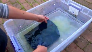 - Jeżeli chcesz natychmiast przetworzyć wydruki do niebieskiego koloru możesz zanurzyć wypłukaną tkaninę lub papier w rozcieńczonym roztworze nadtlenku wodoru, a następnie przepłukać. W przeciwnym razie wydruki będą się utleniać powoli w ciągu 24h.