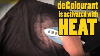 deColourant to preparat usuwający kolor (barwnik) z tkanin, który nie zawiera wybielaczy. Po nałożeniu na tkaninę aktywuje się przez działanie ciepła - za pomocą żelazka, prasy termicznej, opalarki lub mocnej suszarki. Po usunięciu koloru preparat należy wyprać. - Dlaczego lepiej używać deColourant zamiast wybielacza?