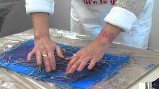 - Nanieś farby akrylowe Dye-Na-Flow na mokrą powierzchnię tkaniny.