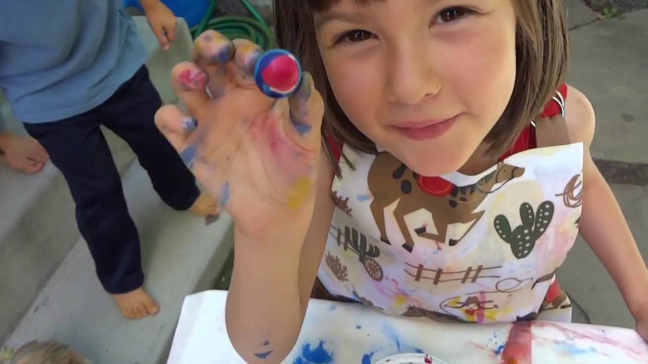- Kiedy jeszcze tkanina jest mokra, a farby nie zaschnięte, ułóż na powierzchni, np. papierowe wycinki, liście lub inne przedmioty.