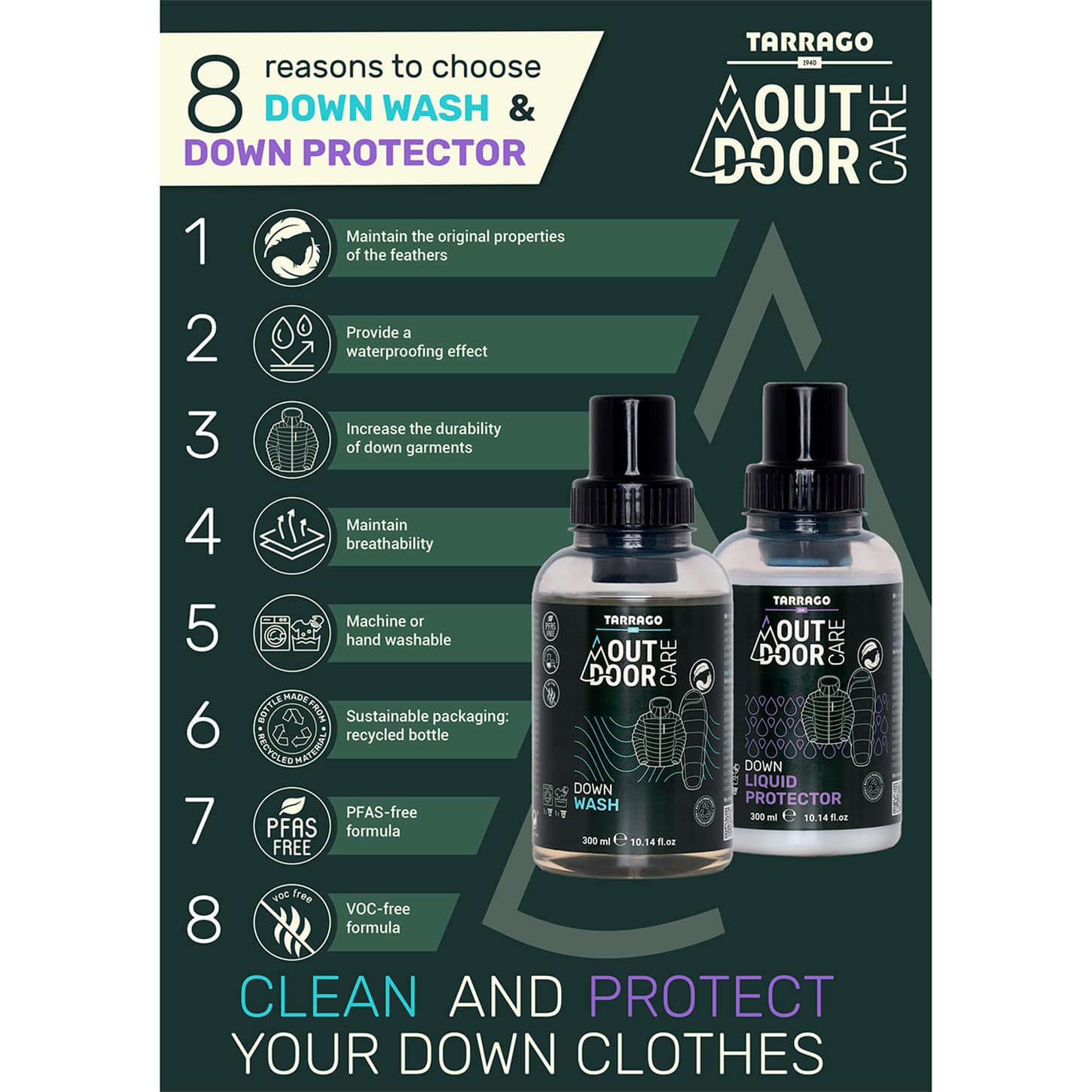 TARRAGO Outdoor DOWN Liquid Protector 300 ml - Płyn do ochrony odzieży z syntetycznego puchu i pierza - sklep Customizacja