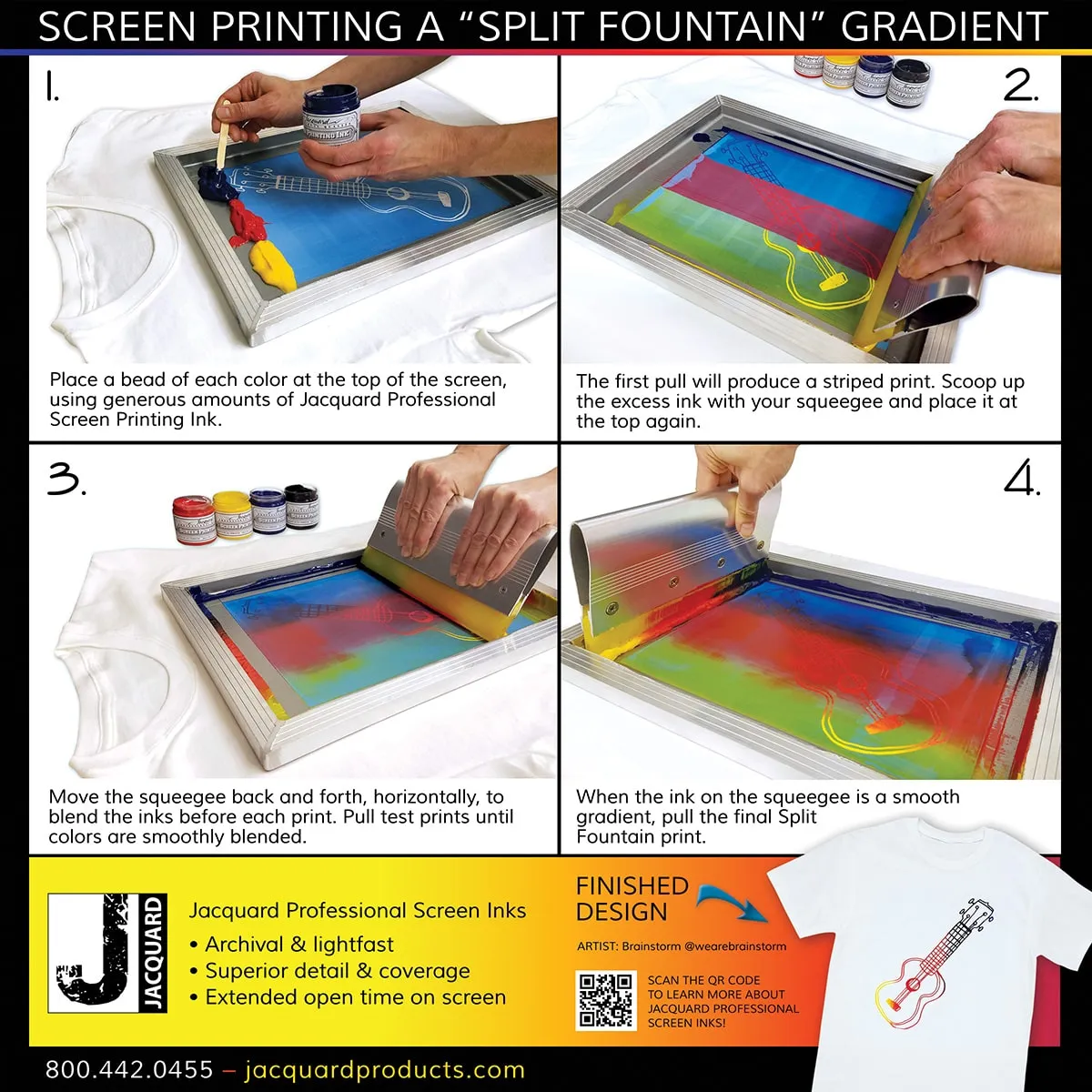 - Farby Jacquard Screen Ink – 4 kolory kryjące OPAQUE (118 ml każdy): Czerwony, Niebieski, Żółty, Czarny