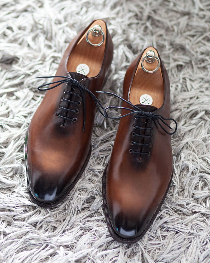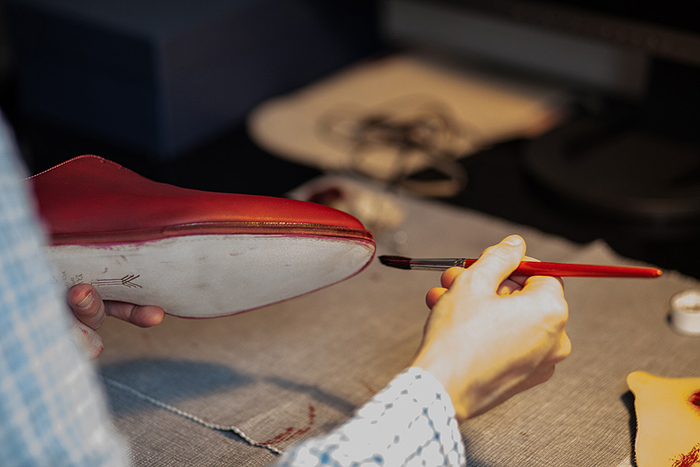 1 - Jeżeli farbowane jest obuwie, przed przystąpieniem do pracy warto je wypchać, np gazetami lub włożyć do środka prawidła, co umożliwi dokładniejsze odtłuszczenie oraz nakładanie pigmentu