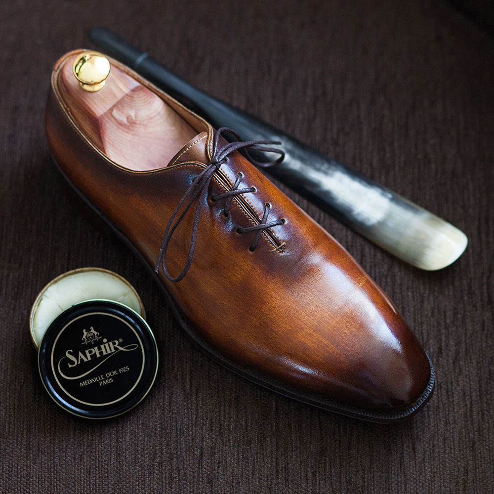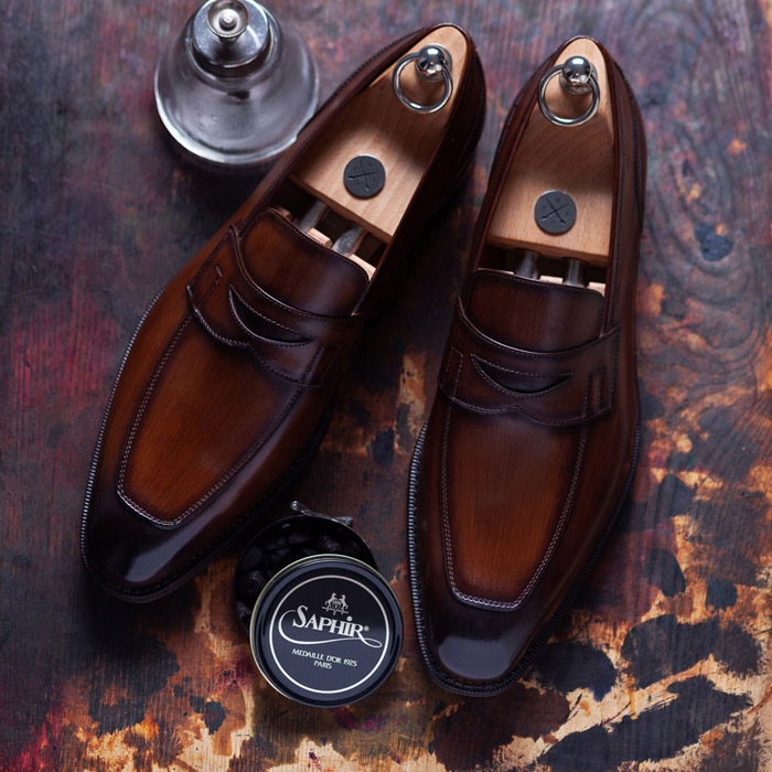 Skóry gładkie wykańczamy balsamem SAPHIR Juvacuir. kremem SAPHIR Pommadier lub kremem SAPHIR Canadian
