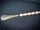 Łyżka do butów, wykonana z drewna bukowego, lakierowanego. Końcówka wykonana z plastiku. Możliwość zawieszenia na rzemyku. Długość 65 cm