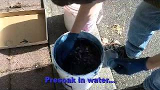 - Zdejmij pokrywę z pojemnika. Jeżeli na powierzchni zauważysz cienką niebieską warstwę, usuń ją używając rękawiczek ochronnych. Po prostu przesuń tę warstwę do krawędzi pojemnika.