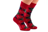 PATINE Socks PARO02-4035 / Czerwone skarpetki w zielono granatowe romby