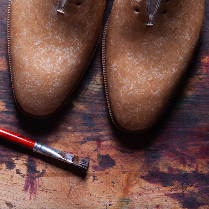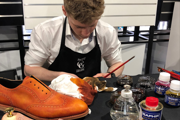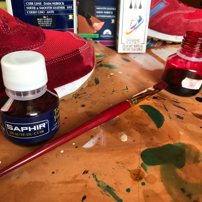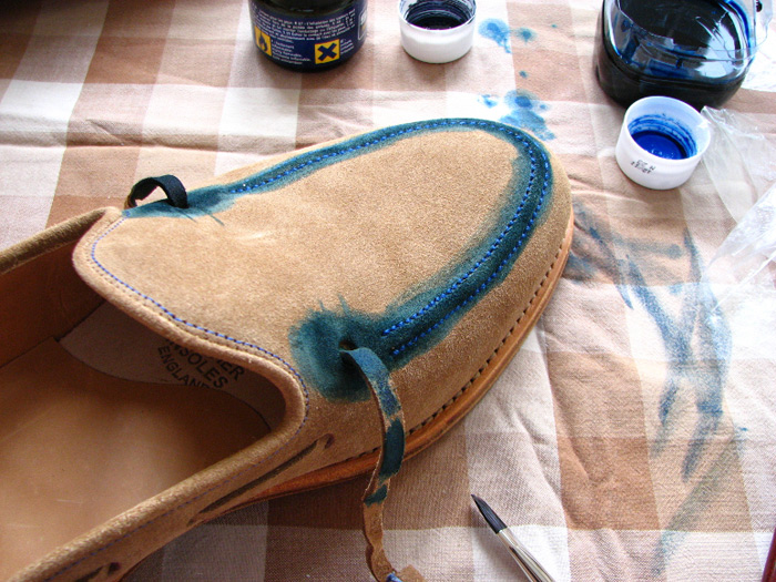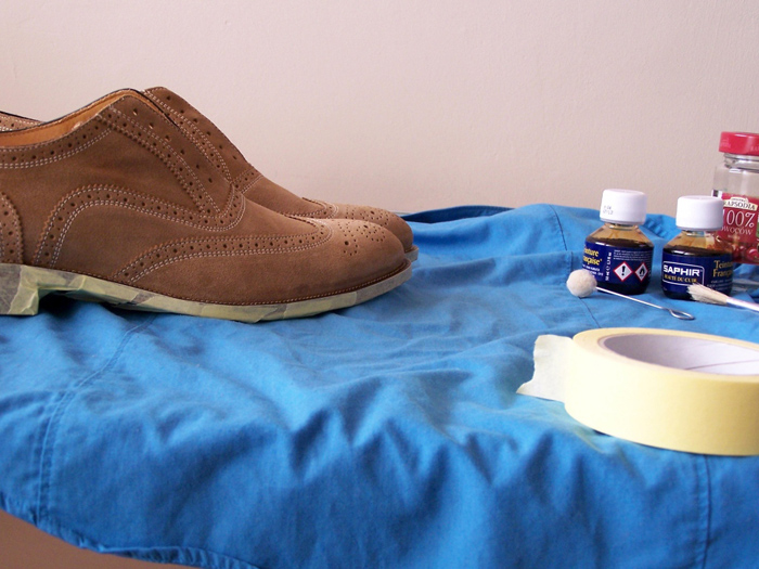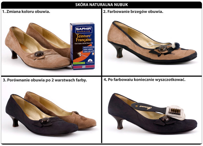 1 - Jeżeli farbowane jest obuwie, przed przystąpieniem do pracy warto je wypchać, np gazetami lub włożyć do środka prawidła, co umożliwi dokładniejsze odtłuszczenie oraz nakładanie pigmentu